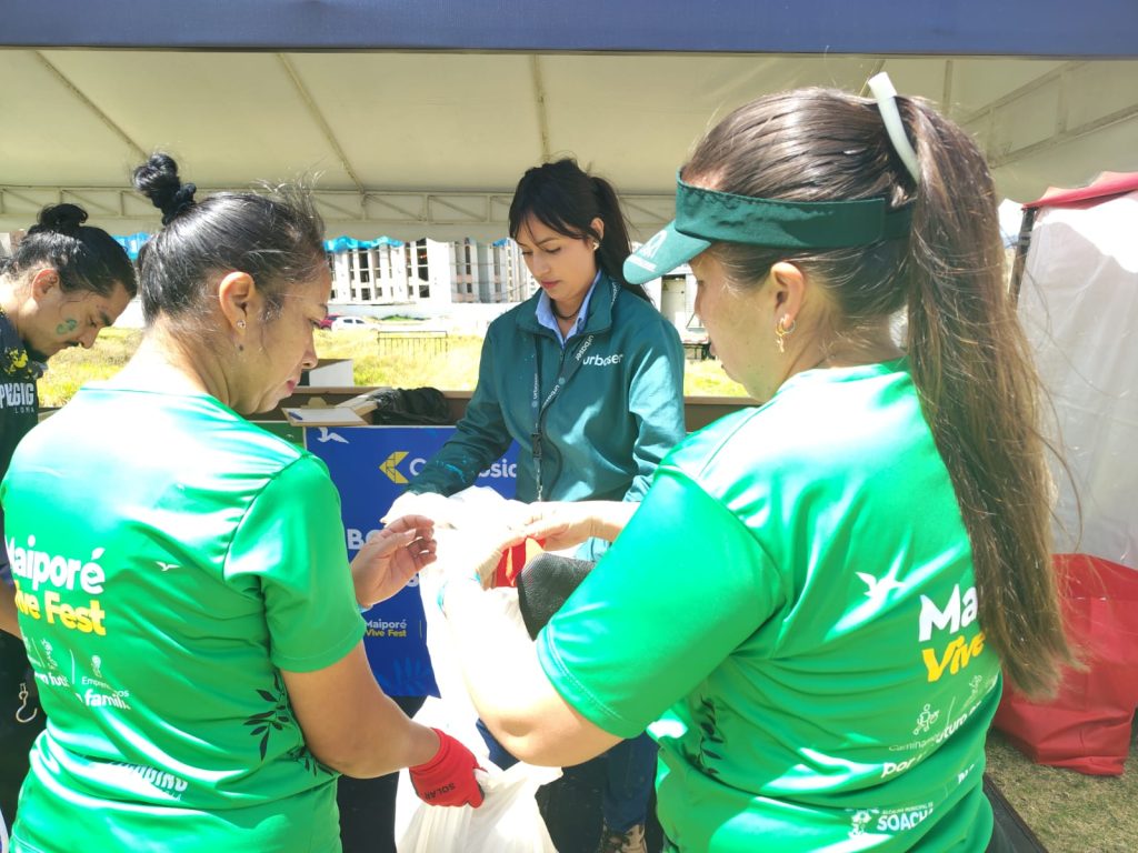 Otra actividad fue el Maipore Vive Fest, organizado por Colsubsidio y celebrado el 21 de septiembre. Durante el evento, se realizó una jornada de plogging (actividad que combina ejercicio y recolección de residuos), en la que participaron cientos de habitantes de Ciudadela Colsubsidio. Urbaser guió a los asistentes en la correcta clasificación de los residuos aprovechables y no aprovechables, fomentando prácticas sostenibles desde la acción comunitaria.