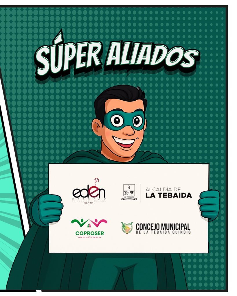 Este proyecto cuenta con el apoyo de importantes aliados estratégicos como el Concejo Municipal de La Tebaida quienes hicieron parte de todo el proceso creativo a través del área de comunicaciones, la Alcaldía Municipal, la emisora comunitaria Edén Estéreo y Cooproser, quienes se sumaron a esta iniciativa como parte de un esfuerzo conjunto para mejorar la convivencia y la imagen urbana.