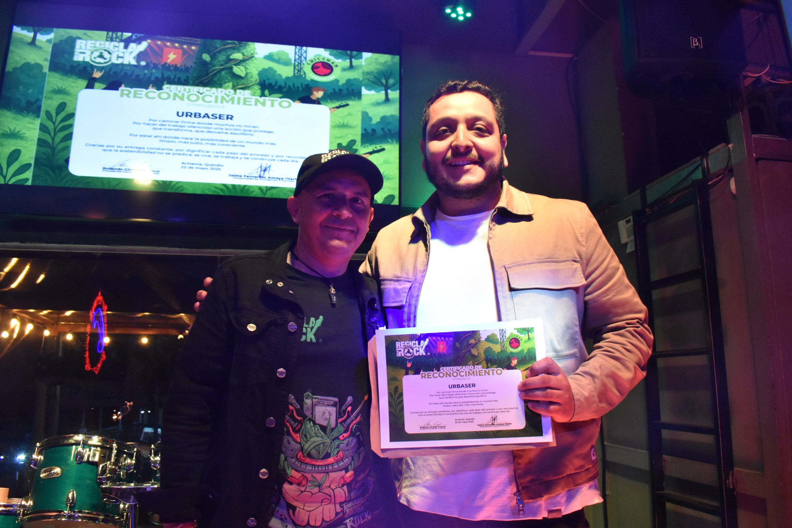 En el marco del evento del lanzamiento del documental “Los sueños se hacen Rock” resultado del Festival Recicla por el Rock, una iniciativa cultural y ambiental que promueve la conciencia ecológica a través de la música y la participación ciudadana, Urbaser fue reconocida por su destacada labor en la promoción de prácticas sostenibles y su compromiso con el fortalecimiento de la economía circular en el Quindío.